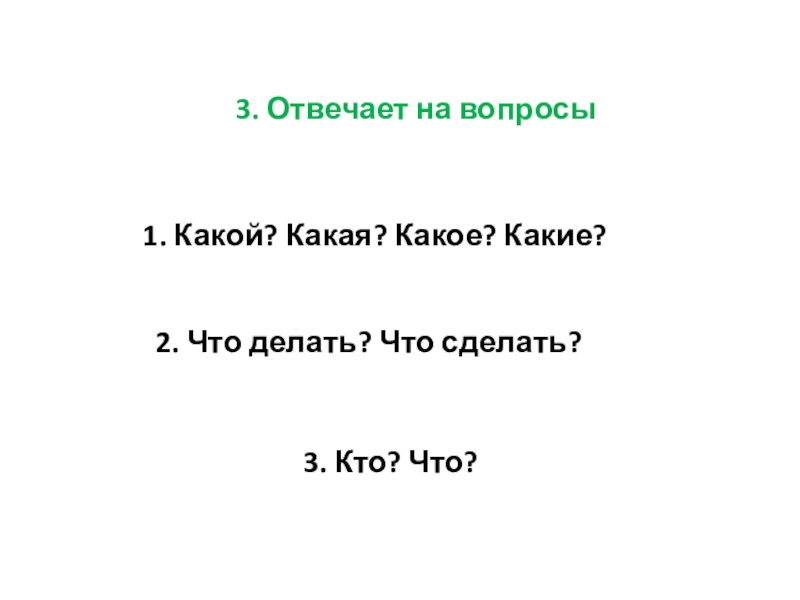 3. Отвечает на вопросы какой? какая? какое? какие? и др.