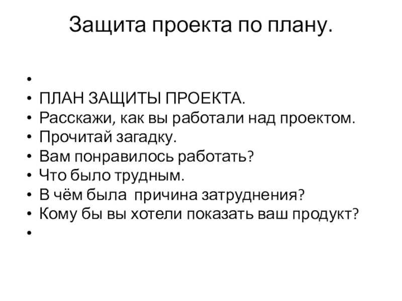 Слайд 46Защита проекта по плану.