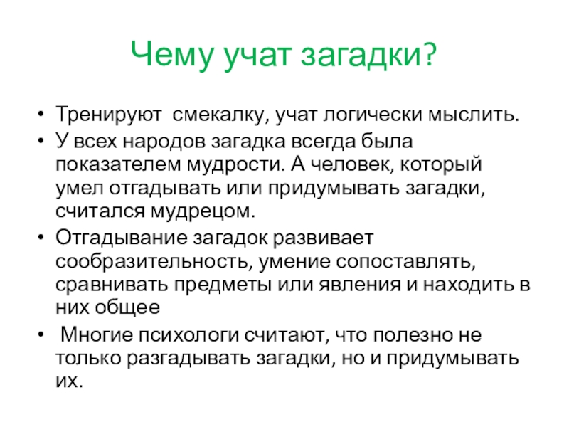 Слайд 13Чему учат загадки?