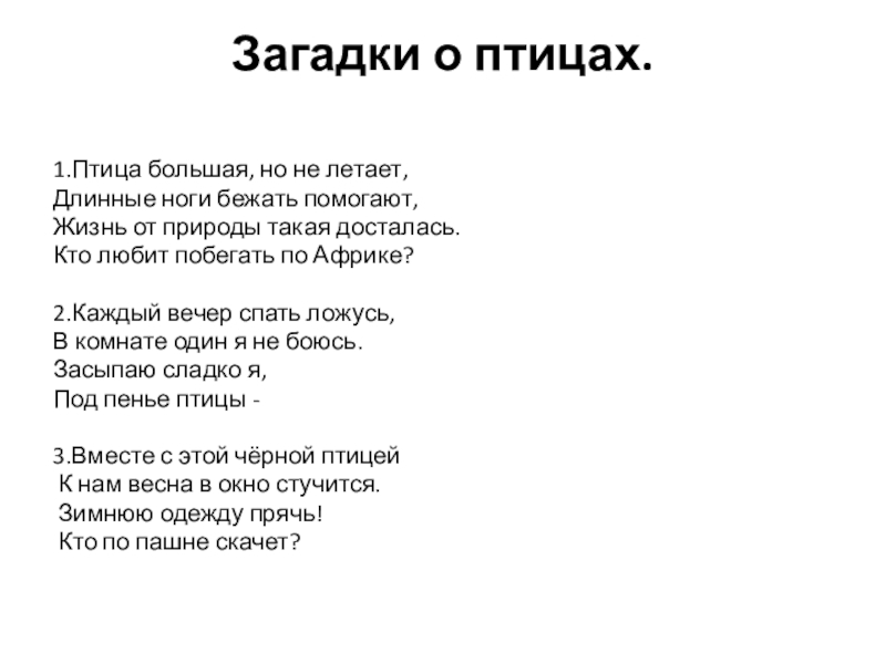 Слайд 16Загадки о птицах.