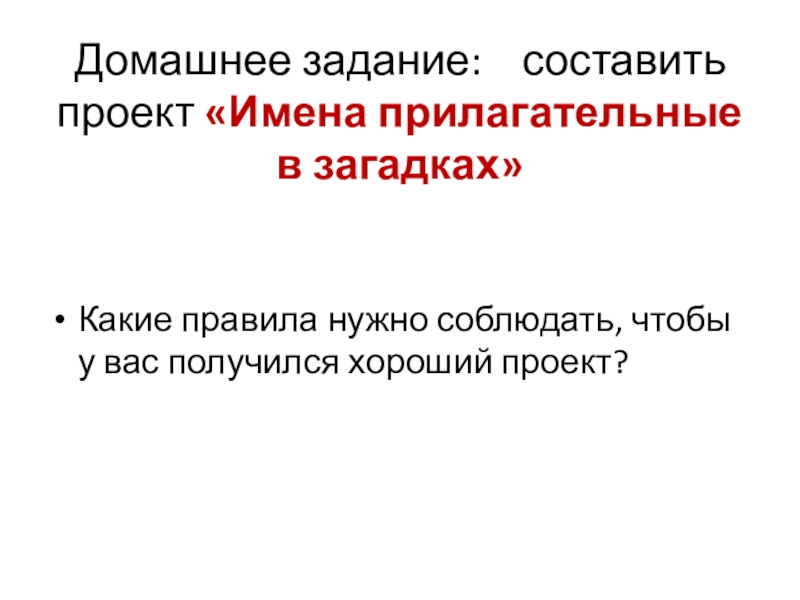 Домашнее задание: составить проект «Имена прилагательные в загадках»