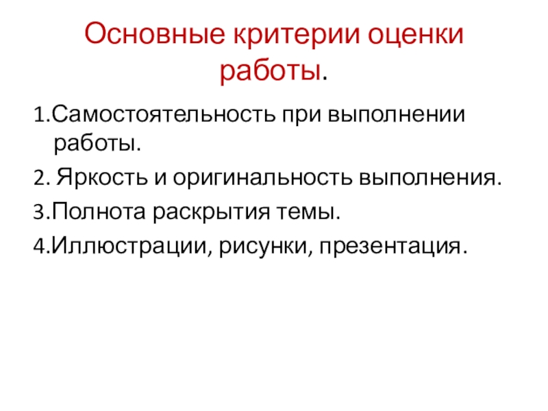 Слайд 43Основные критерии оценки работы.
