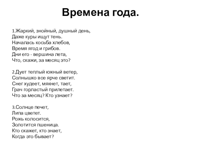 3.Подготовьте выразительное чтение загадок ( каждый по одной загадке).