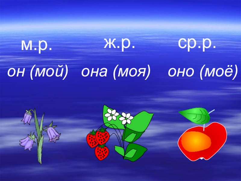 м.р.ж.р.ср.р.он (мой)она (моя)оно (моё)