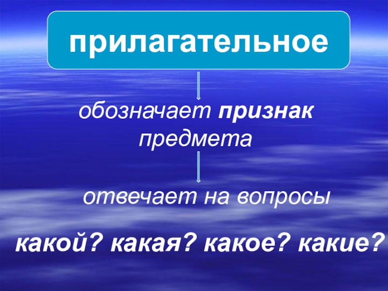 прилагательноеобозначает признак предметаотвечает на вопросыкакой? какая? какое? какие?
