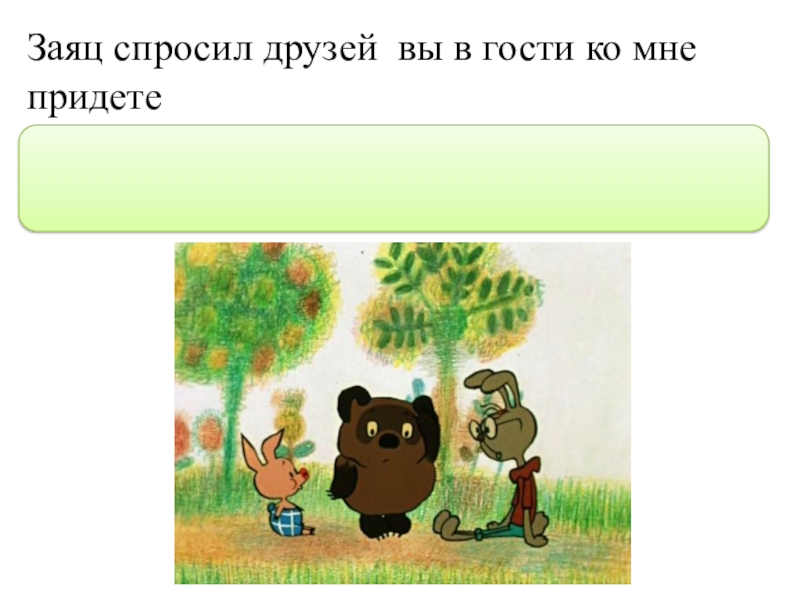 Слайд 4Заяц спросил друзей вы в гости ко мне придете