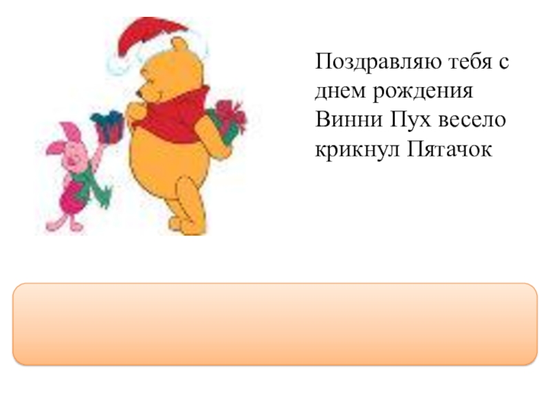 Слайд 10Поздравляю тебя с днем рождения Винни Пух весело крикнул Пятачок