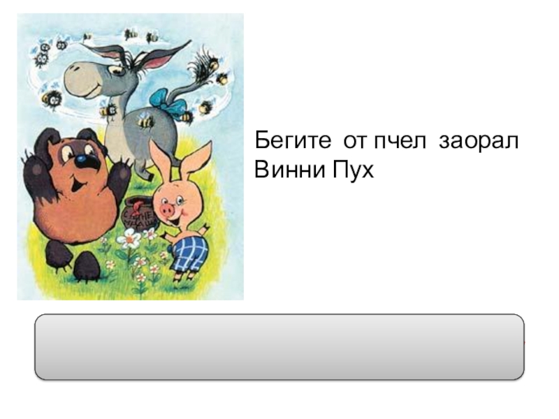 Бегите от пчел заорал Винни Пух“ Бегите от пчел!” – заорал Винни Пух.