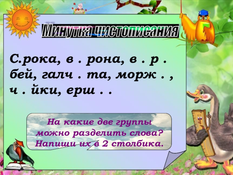 На какие две группы можно разделить слова? Напиши их в 2 столбика.