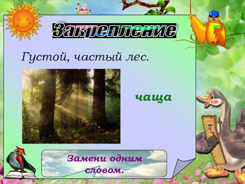 Замени одним словом.