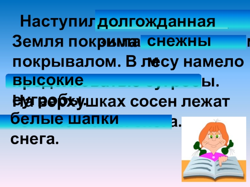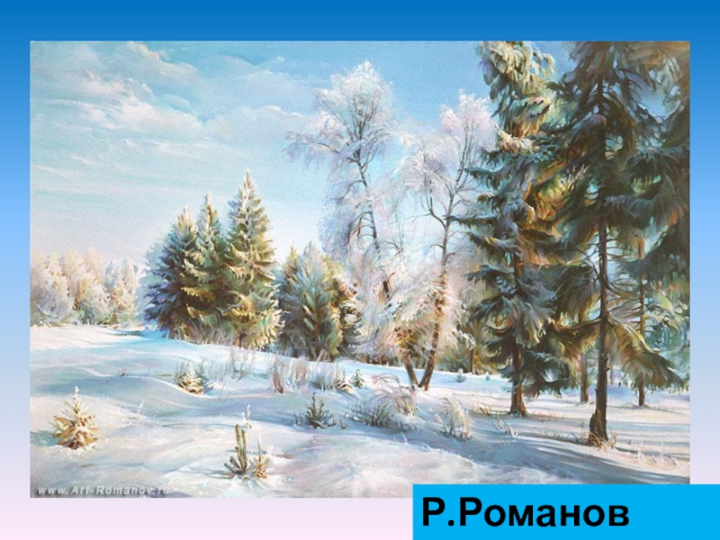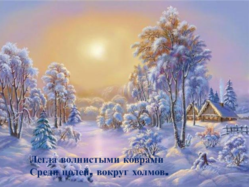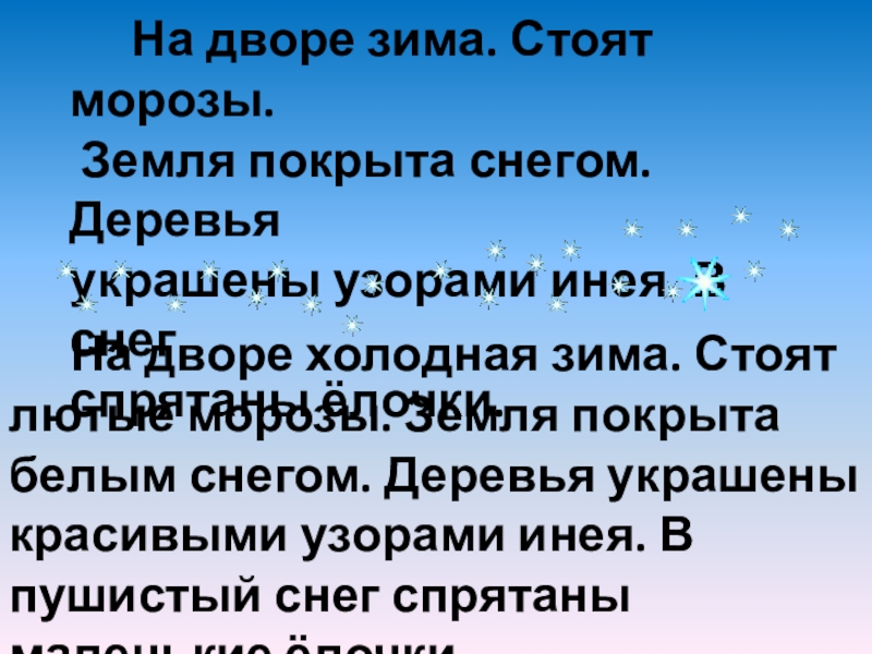 красивыми узорами инея. В пушистый снег спрятаны маленькие ёлочки.