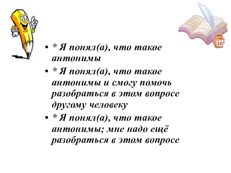 * Я понял(а), что такое антонимы* Я понял(а), что такое антонимы и смогу помочь разобраться в этом