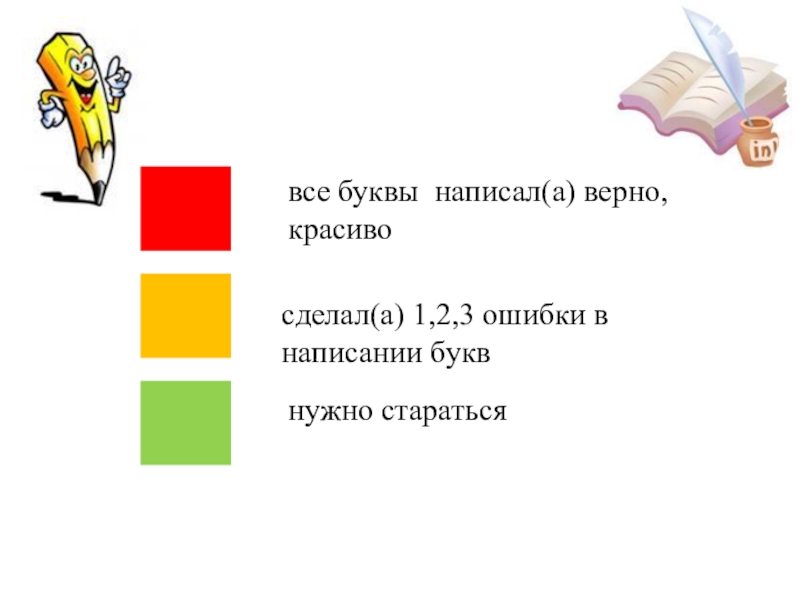 все буквы написал(а) верно, красиво сделал(а) 1,2,3 ошибки в написании буквнужно стараться