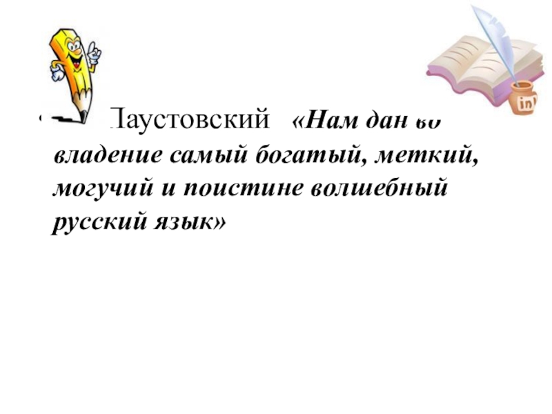 Слайд 2К.Г.Паустовский «Нам дан во владение самый богатый, меткий, могучий и
