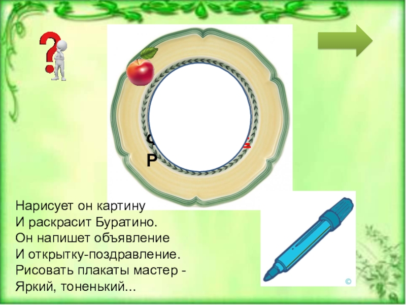 ФЛОМАСТЕРНарисует он картинуИ раскрасит Буратино.Он напишет объявлениеИ открытку-поздравление.Рисовать плакаты мастер -Яркий, тоненький...