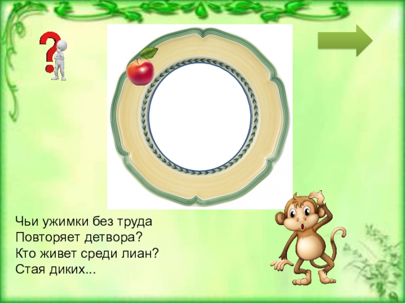 ОБЕЗЬЯНЧьи ужимки без трудаПовторяет детвора?Кто живет среди лиан?Стая диких...
