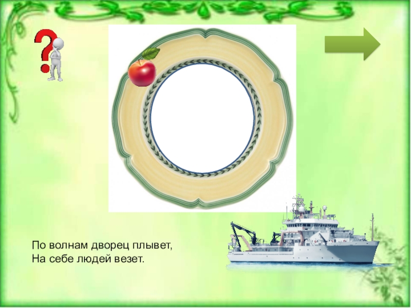 КОРАБЛЬПо волнам дворец плывет, На себе людей везет.