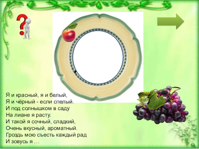 ЯБЛОКОКруглое, румяное,  Я расту на ветке:  Любят меня взрослые  И маленькие детки.