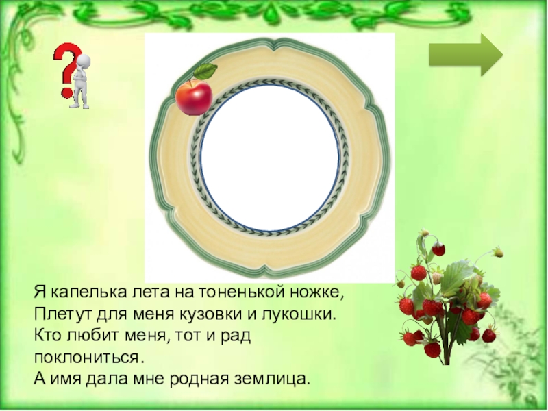 Я капелька лета на тоненькой ножке,  Плетут для меня кузовки и лукошки.  Кто