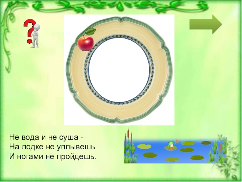 БОЛОТОНе вода и не суша -На лодке не уплывешьИ ногами не пройдешь.