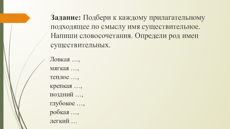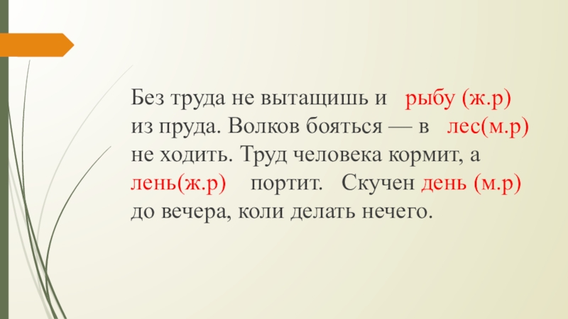 (Рыбу, лес, день, лень.)