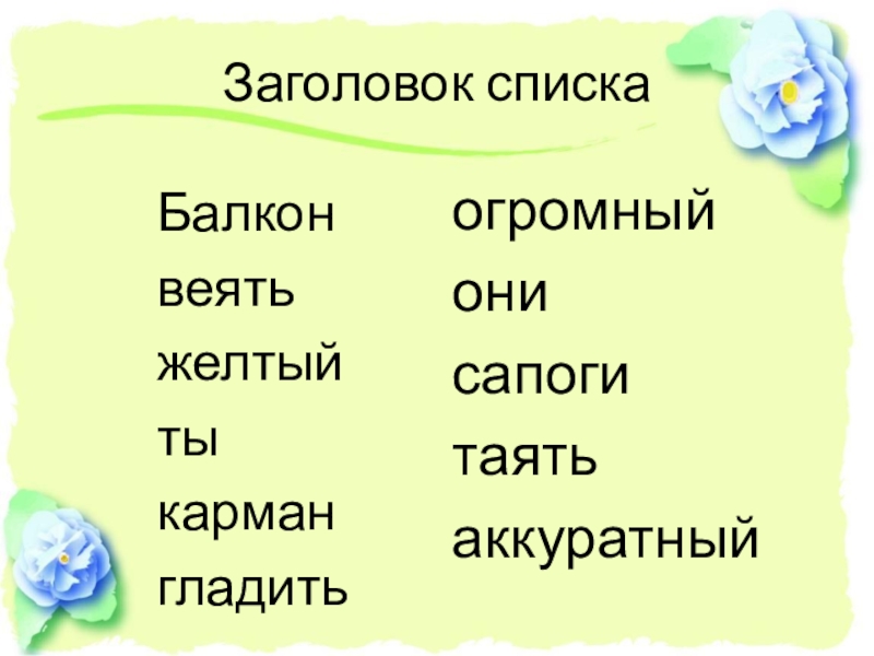 Заголовок спискаБалконвеятьжелтыйтыкарман гладить огромныйонисапогитаятьаккуратный