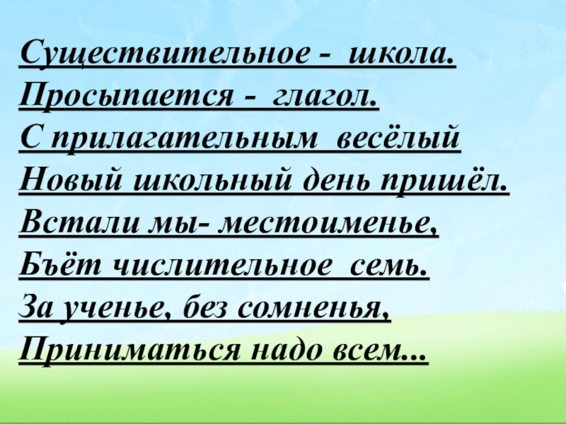 местоименье, Бъёт числительное  семь. За ученье, без сомненья, Приниматься надо всем...