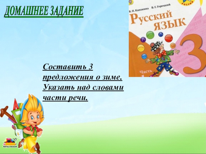 Слайд 18Составить 3 предложения о зиме. Указать над словами части речи.
