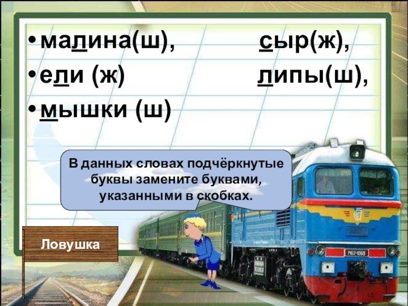 В данных словах подчёркнутые буквы замените буквами, указанными в скобках.