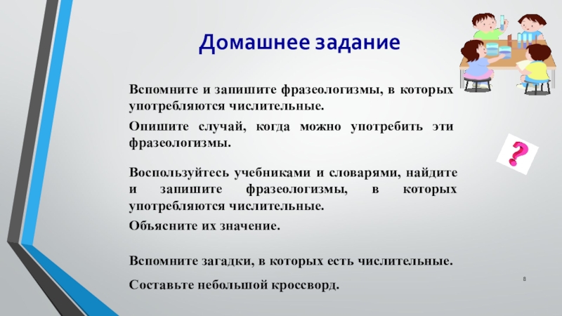 Воспользуйтесь учебниками и словарями, найдите и запишите фразеологизмы, в которых употребляются числительные.