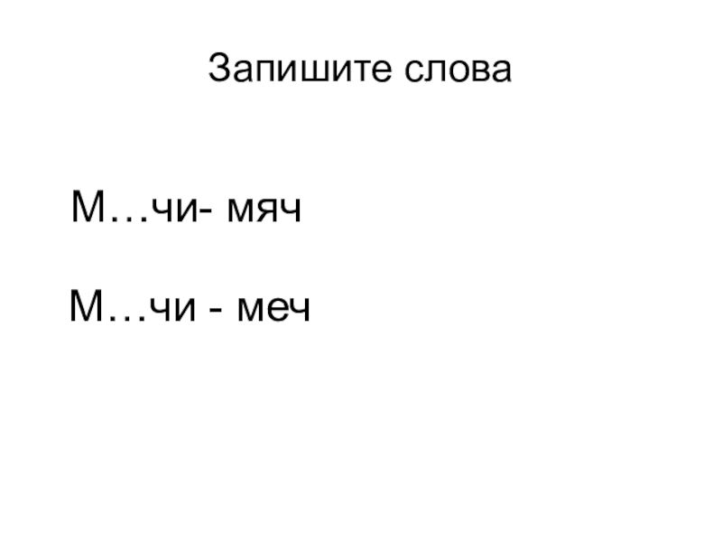 Запишите слова  М…чи- мяч  М…чи - меч