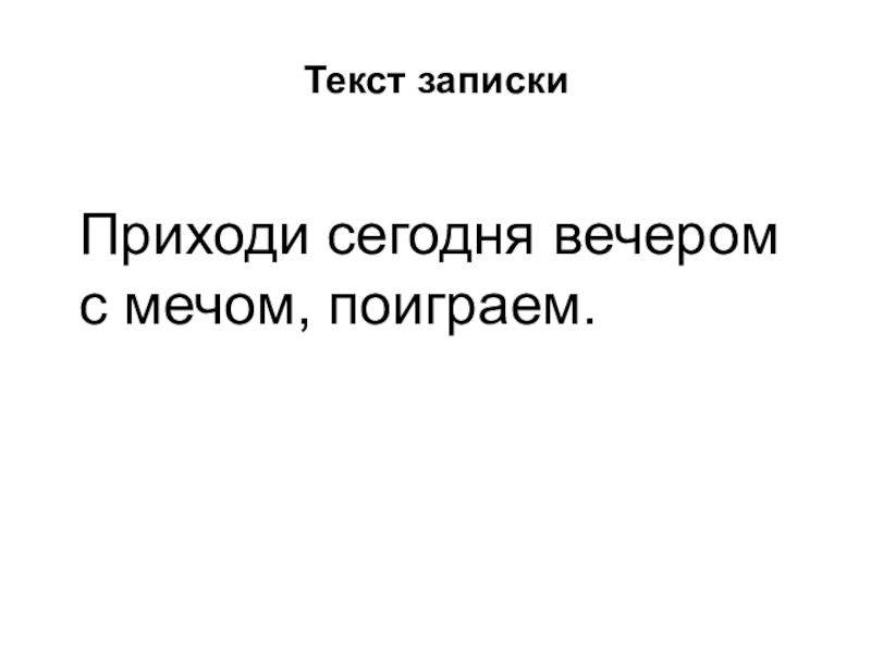 Текст записки Приходи сегодня вечером с мечом, поиграем.