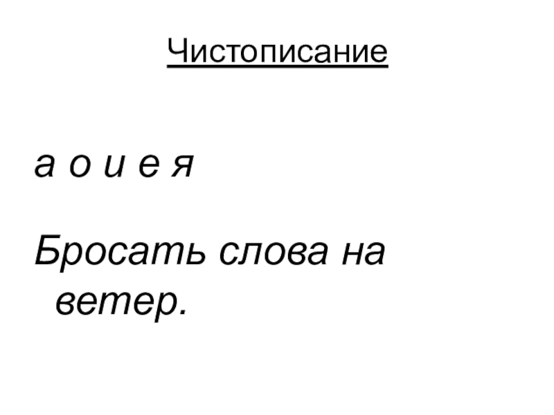 Чистописание  а о и е я Бросать слова на ветер.