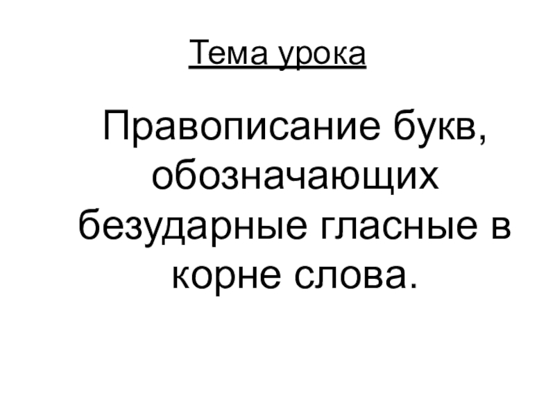 Тема урока  Правописание букв, обозначающих безударные гласные в корне слова.