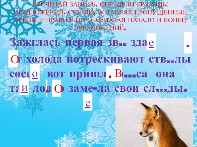 от холода потрескивают ств..лы сосен вот пришла л…са она так ловко заме-ла свои сл…ды.