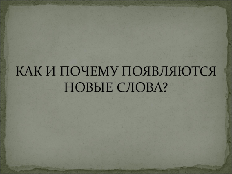 КаК И ПОЧЕМУ ПОЯВЛЯЮТСЯ НОВЫЕ СЛОВА.