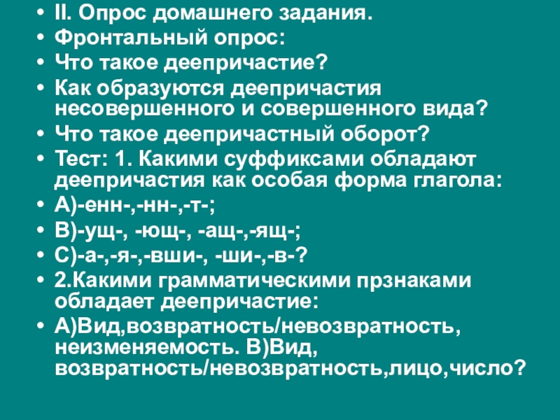 Тест: 1. Какими суффиксами обладают деепричастия как особая форма глагола: