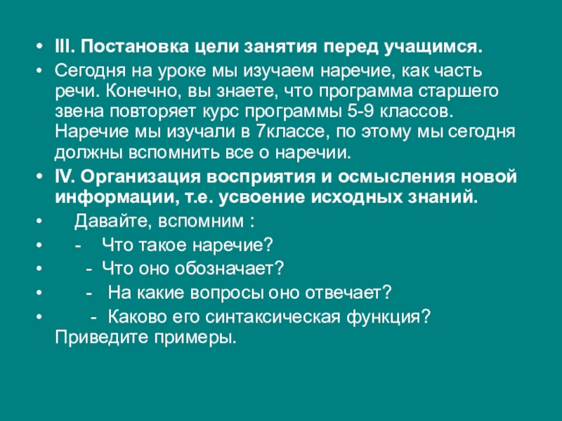 Слайд 4ІІІ. Постановка цели занятия перед учащимся.