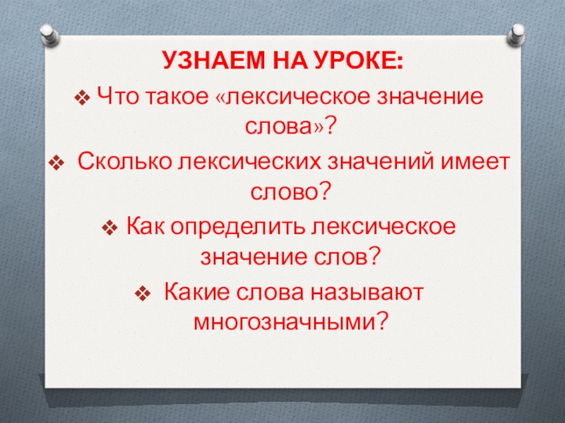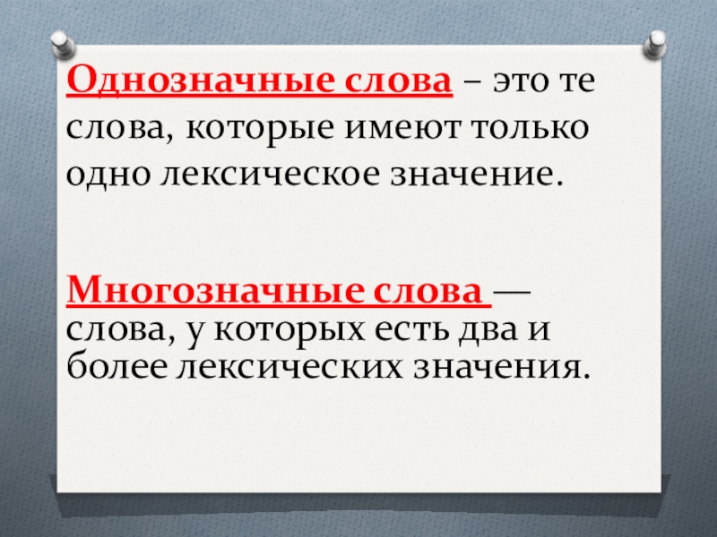 Многозначные слова — слова, у которых есть два и более лексических значения.