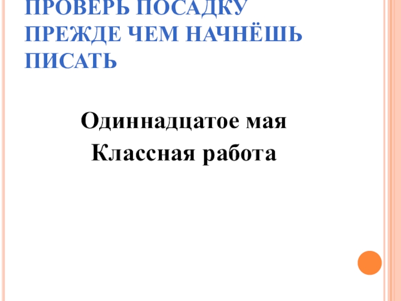 ПРОВЕРЬ ПОСАДКУ ПРЕЖДЕ ЧЕМ НАЧНЁШЬ ПИСАТЬОдиннадцатое маяКлассная работа