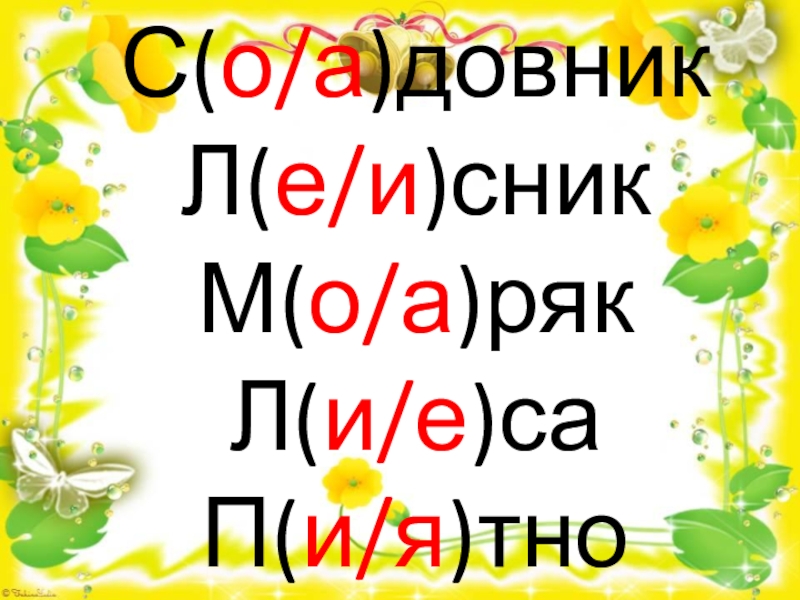 С(о/а)довникЛ(е/и)сникМ(о/а)рякЛ(и/е)саП(и/я)тно