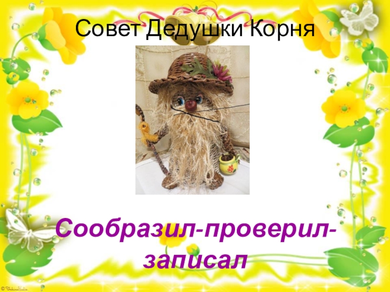 Слайд 9Совет Дедушки Корня Сообразил-проверил-записал