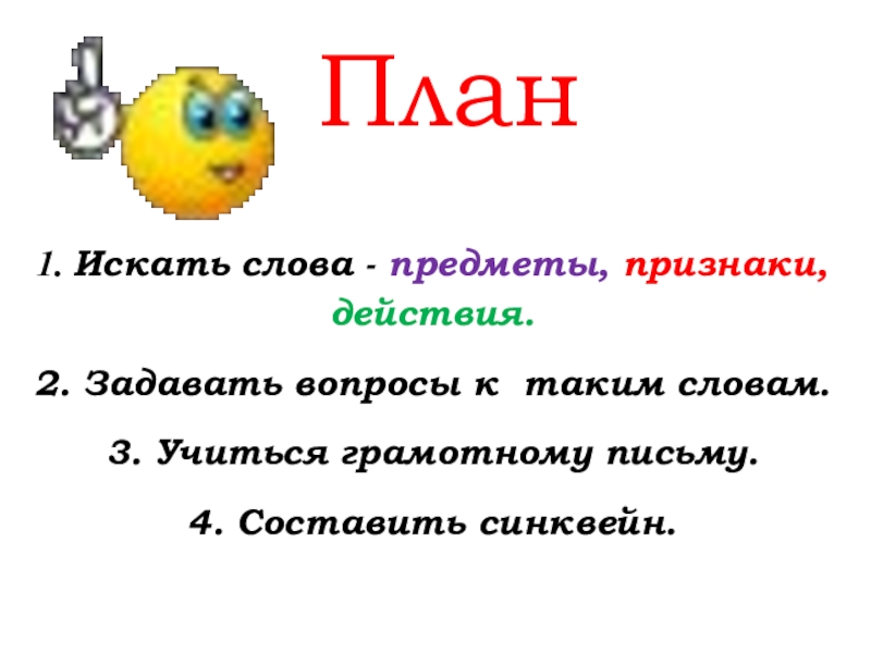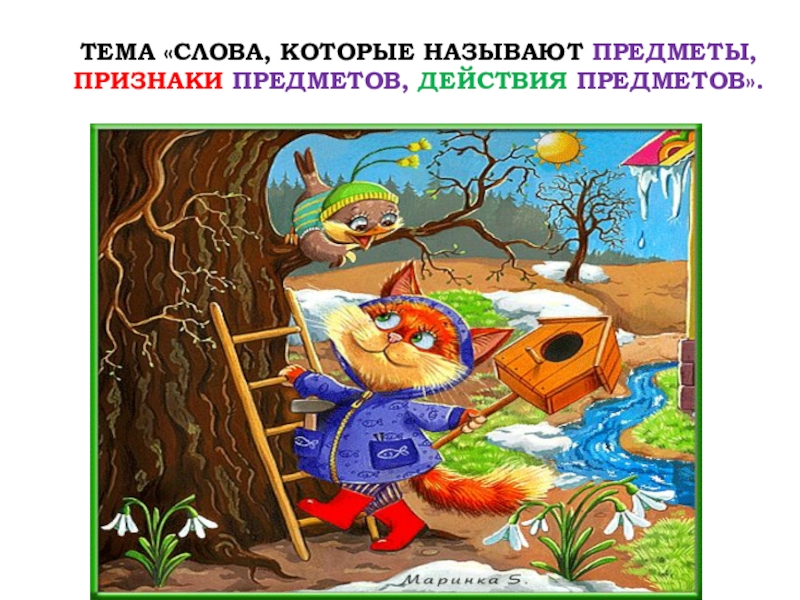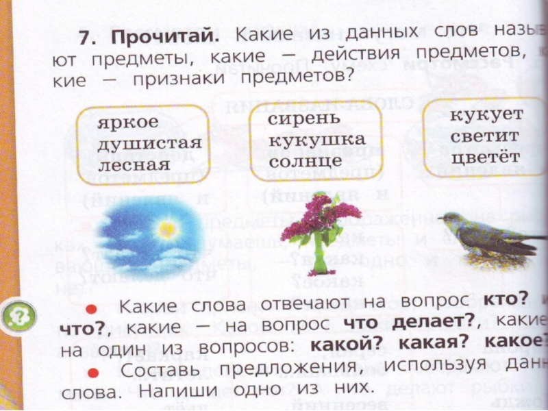 Что? –Снег, какой? –пушистый, что делает? –летит.