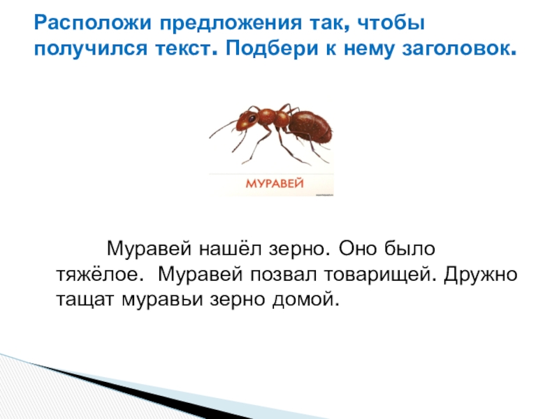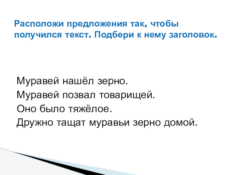 Расположи предложения так, чтобы получился текст. Подбери к нему заголовок.