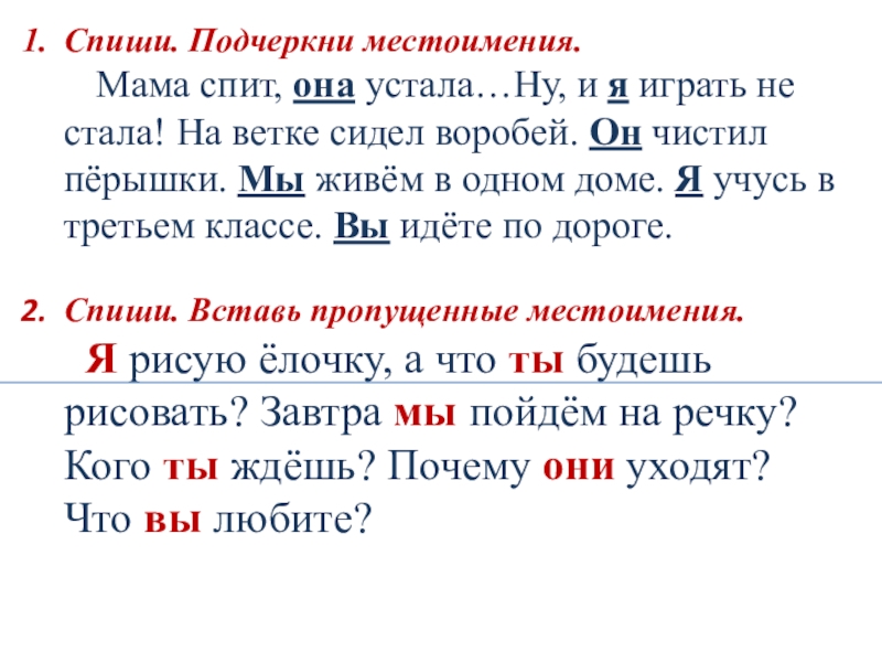 Слайд 33Спиши. Подчеркни местоимения.