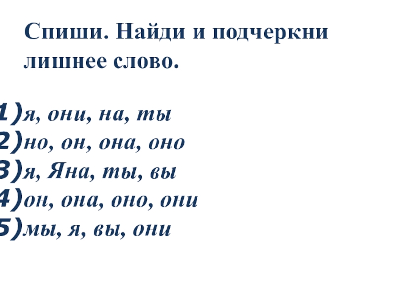 Слайд 29Спиши. Найди и подчеркни лишнее слово.