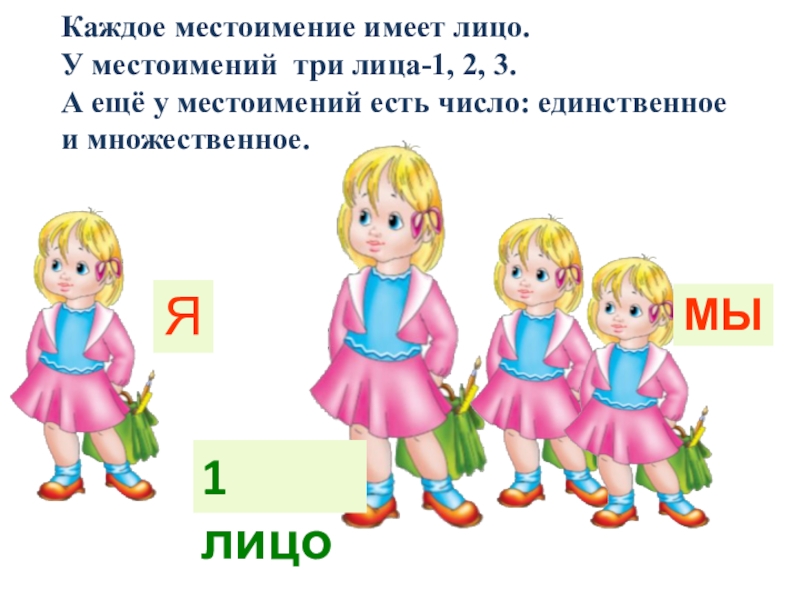 Слайд 16У каждого местоимения своё лицо .