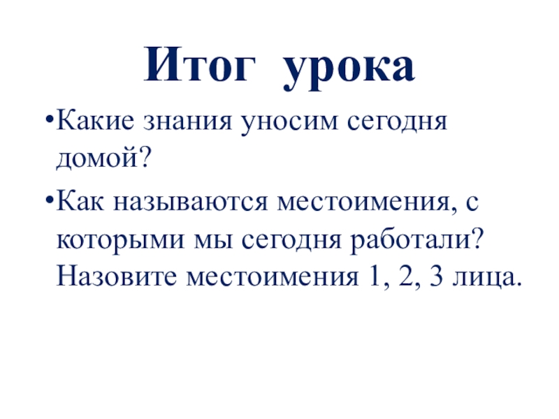 сегодня работали? Назовите местоимения 1, 2, 3 лица.