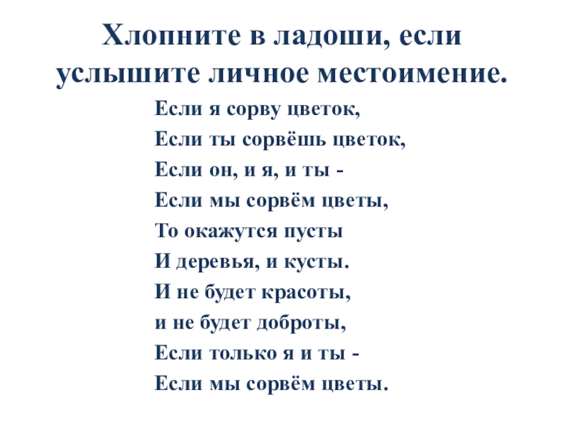 Слайд 27Хлопните в ладоши, если услышите личное местоимение.