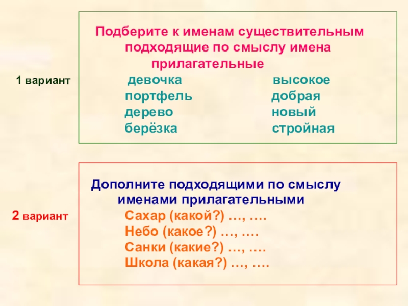2 вариант Сахар (какой?) …, ….